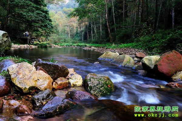 張家界是我國第一個國家森林公園,境內(nèi)奇山異水、奇花異木、奇禽異獸,奇絕天下。登黃石寨而小武陵,其山、石、云、霧、松,號稱“六奇”。金鞭溪則峽長谷幽,溪水清澈。