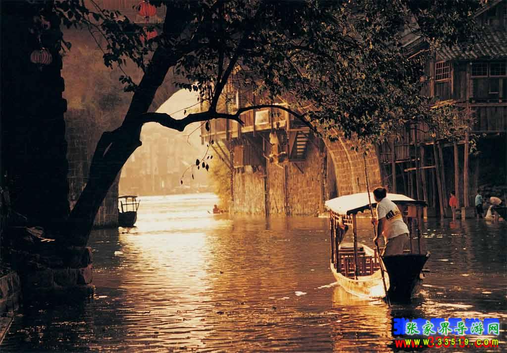 ★ 坐上烏蓬船,聽著艄公的號子,看著鳳凰古城兩岸已有百年歷史的土家吊腳樓,別有一番韻味;順?biāo)拢┻^虹橋一幅江南水鄉(xiāng)的畫卷便展現(xiàn)于眼前:萬壽宮、萬名塔、奪翠樓...