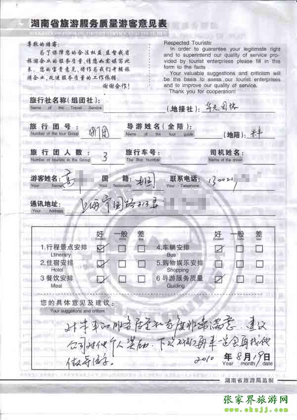 - 游客夏先生為表揚導游李姣姣寫來表揚信致我張家界... [14811]