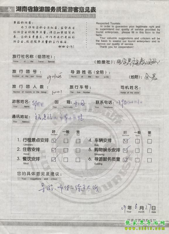 - 游客夏先生為表?yè)P(yáng)導(dǎo)游李姣姣寫來表?yè)P(yáng)信致我張家界... [14811]