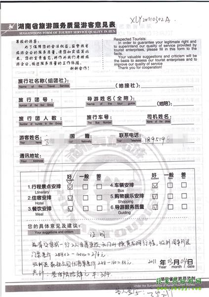 - 2011年10月26日張小姐一行18人旅游質(zhì)量反饋 [10482]