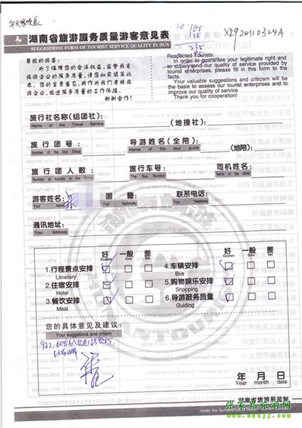- 2011年10月26日張小姐一行18人旅游質(zhì)量反饋 [10482]