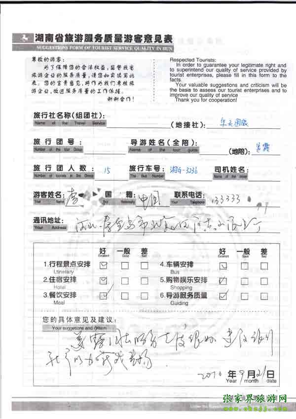 - 游客夏先生為表揚(yáng)導(dǎo)游李姣姣寫來表揚(yáng)信致我張家界... [14811]