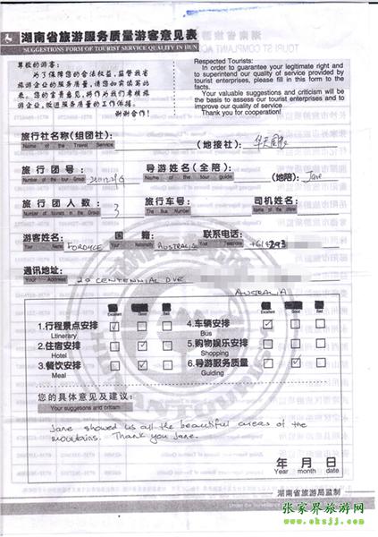 - 游客夏先生為表揚導游李姣姣寫來表揚信致我張家界... [14811]