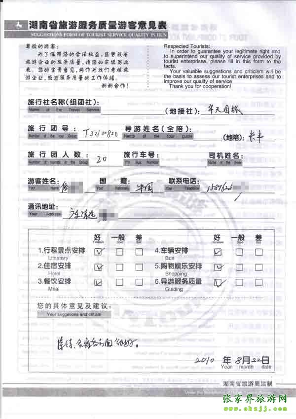 - 2011年10月26日張小姐一行18人旅游質(zhì)量反饋 [10482]