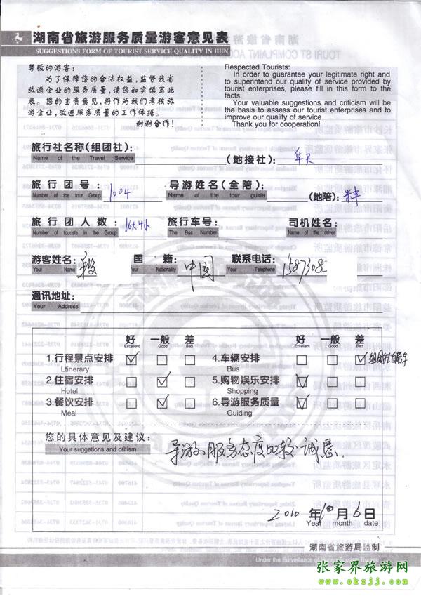 - 2011年10月26日張小姐一行18人旅游質(zhì)量反饋 [10482]
