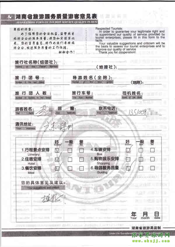 - 游客夏先生為表揚導游李姣姣寫來表揚信致我張家界... [14811]