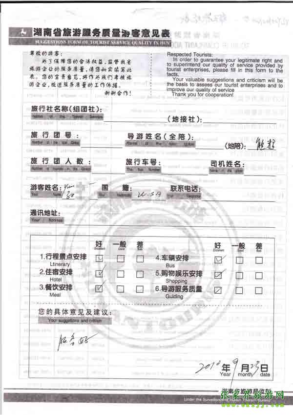 2010年9月23日美國孫小姐旅游質量反饋:服務好