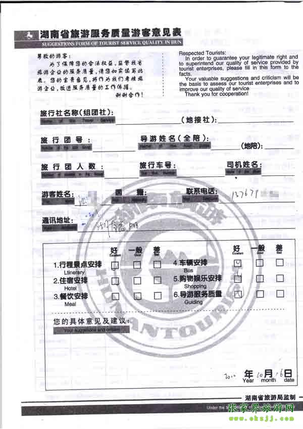 - 2011年10月26日張小姐一行18人旅游質(zhì)量反饋 [10482]