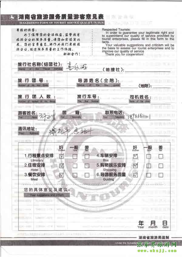 2010年7月25日許先生旅游質量反饋