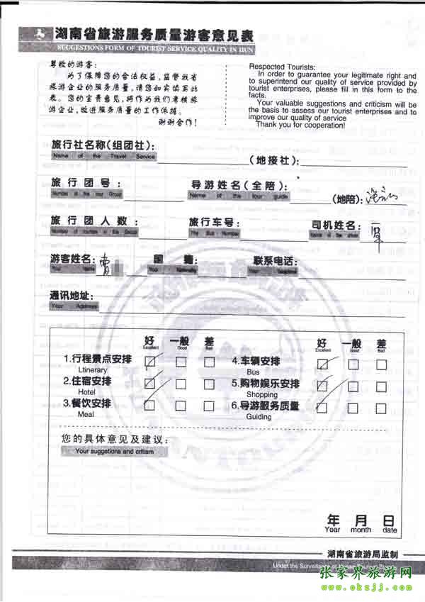 - 游客夏先生為表揚導游李姣姣寫來表揚信致我張家界... [14811]