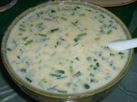 將用水浸泡過的黃豆用磨子磨碎,摻入切細(xì)的青菜葉,然后用溫火煮熟即可。此樣菜雖做法簡單,但營養(yǎng)價(jià)值極高且味鮮美,為當(dāng)?shù)厝顺S玫囊坏啦恕?/p> ■土家糍粑