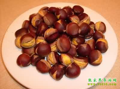 板栗與尖栗(俗名“漩栗”),山毛櫸科,是木本植物,主要含淀粉、糖等,在武陵源區(qū)各景區(qū)都有廣泛的分布。它們是多年生落葉喬木,一般樹高3至5米到10米左右。栗樹春末夏初開花,夏天生長,秋天結(jié)實。果實成球形,外殼帶刺,里面栗子光滑成紫色,所以農(nóng)家有“娘被千針衫,兒穿紫龍袍”的謎語。板栗成熟以后,外殼便自然張開,栗子隨風脫落。如在板栗林里撿栗子,倒是一大樂趣。“白露”過后,板栗大量成熟,滿樹的栗球都張開了笑口,一遇到颯颯吹來,栗子便唏唏唰唰唰隨風脫落,滾進山溝里或低洼處,如果運氣好,可以撿到一窩一窩的板栗,有時可以撿幾十斤。